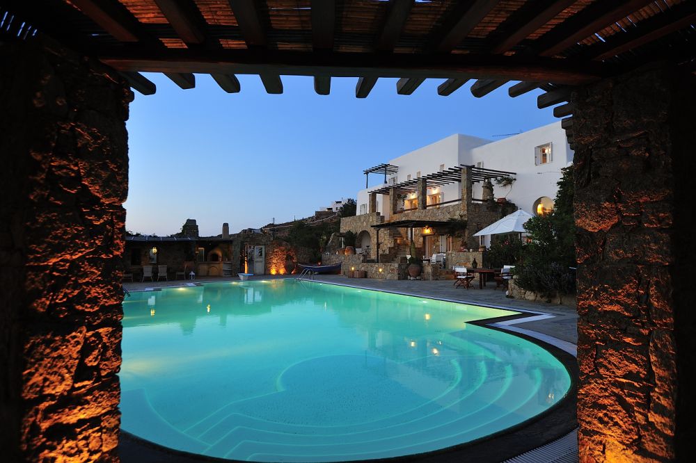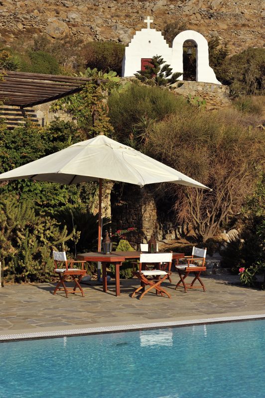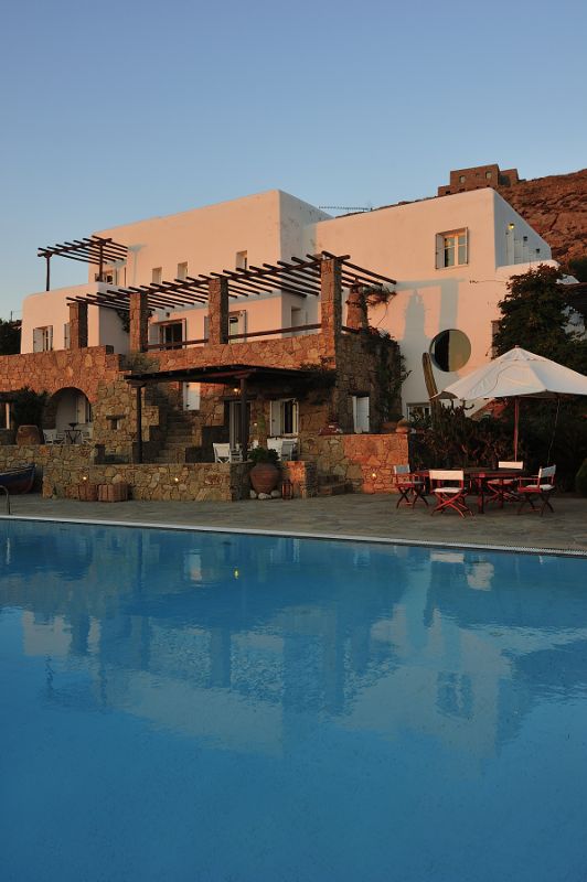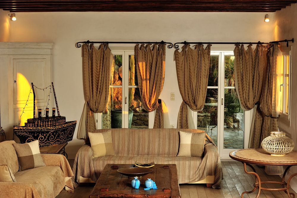 Due to its location at the center of the island on a sloping hillside of Kounoupas, Villa Mykonos View has equally easy access to both the southern and northern beaches of preference, dividing, also, the distances between the two main towns of Chora and Ano Mera. "Off the beaten path" it is ideal for twelve couples, or an extended family, who wish to spend their holiday together in privacy, while maintaining easy access to all that Mykonos Island has to offer.