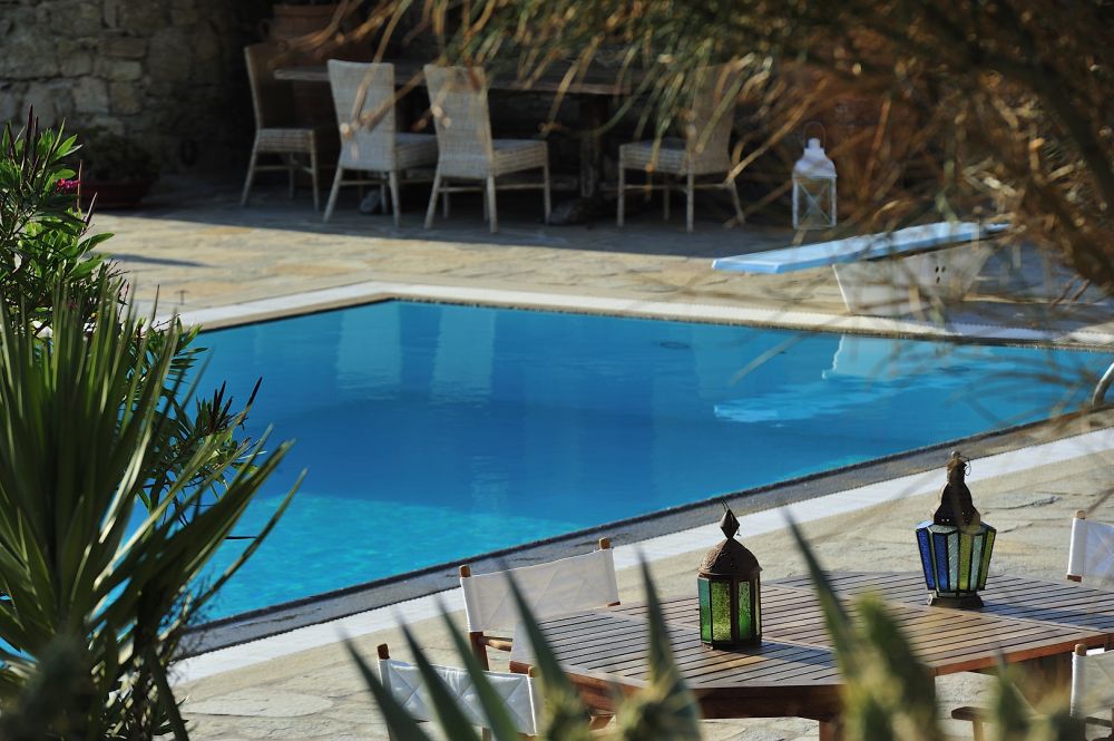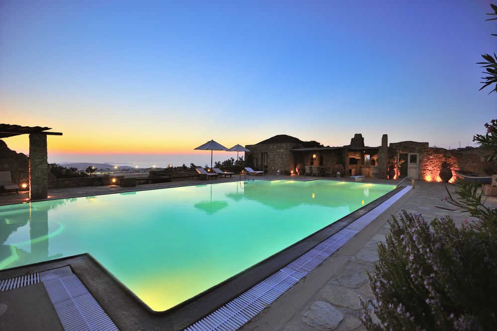 Villa Mykonos View is situated on the hillside of Kounoupas at the very center of Mykonos Island, just 10 minutes from Mykonos Town. From its location it practically overlooks the Western half of Mykonos Island, the Aegean Sea and the Islands of Delos, Rhenia, Syros, Paros and Tinos.