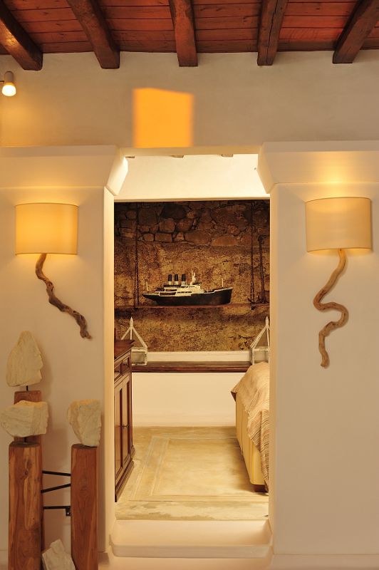 Down by the pool is a pergola shaded BBQ and meditation area, as well as the outdoor dining/lounging sofas, inviting our guests to take in a view that few villas in Mykonos can offer and is ideal for a quiet early morning coffee or a private evening sundowner. The lower garden area provides four guest rooms (attached), all en-suite and with double beds, and an independent kitchen, making them suitable for either adults or teenagers/attendants who wish to seek privacy from the rest of the group.