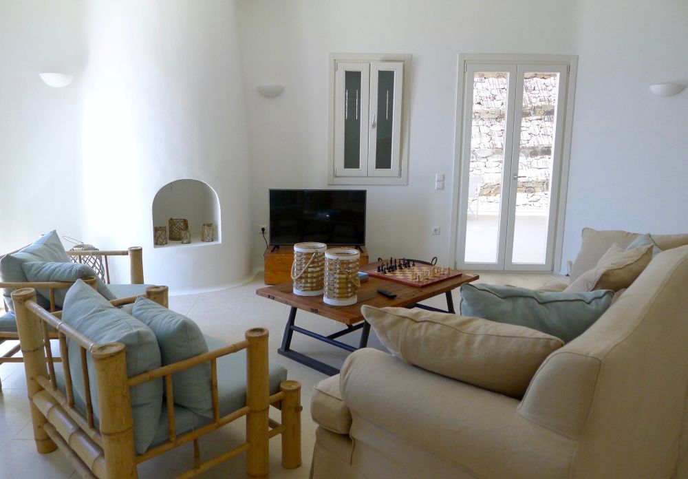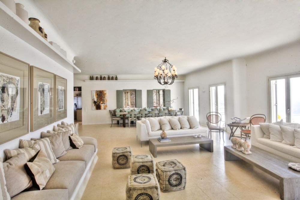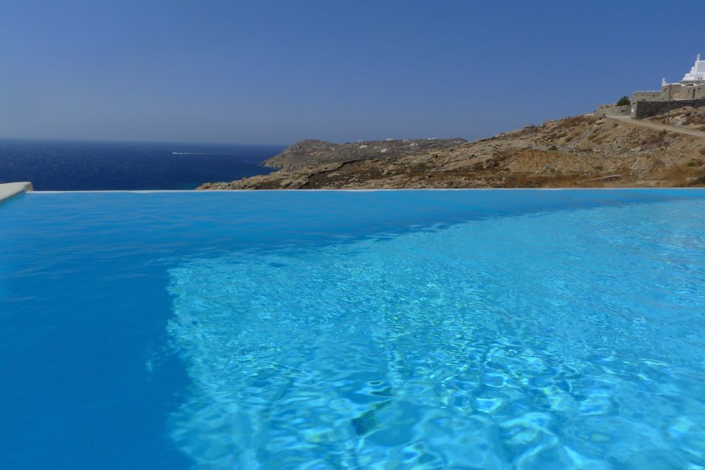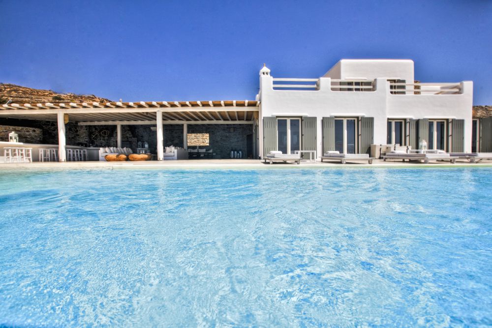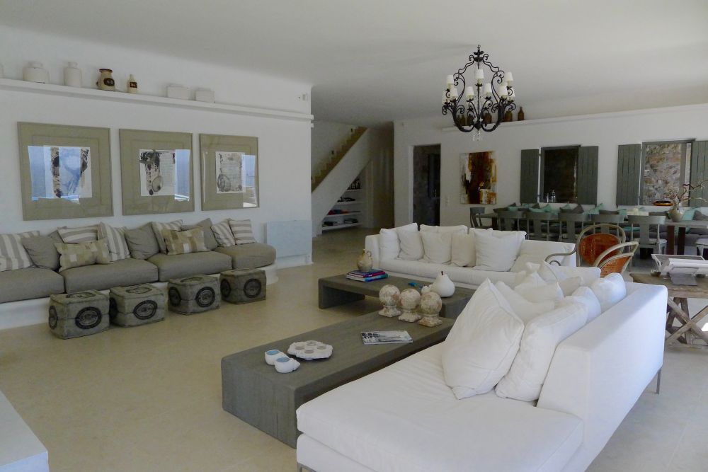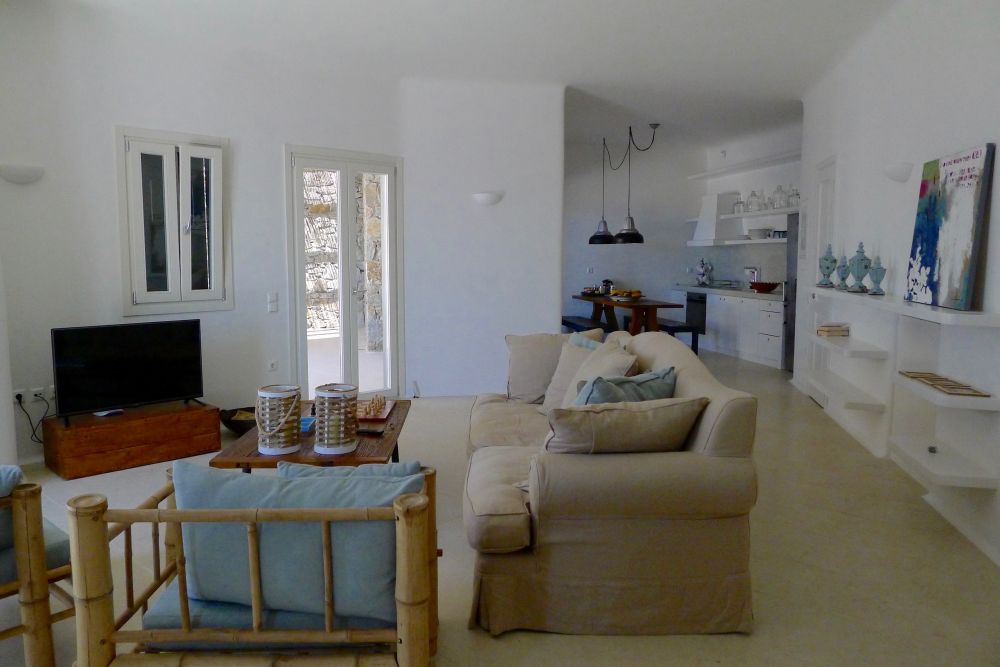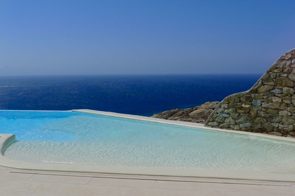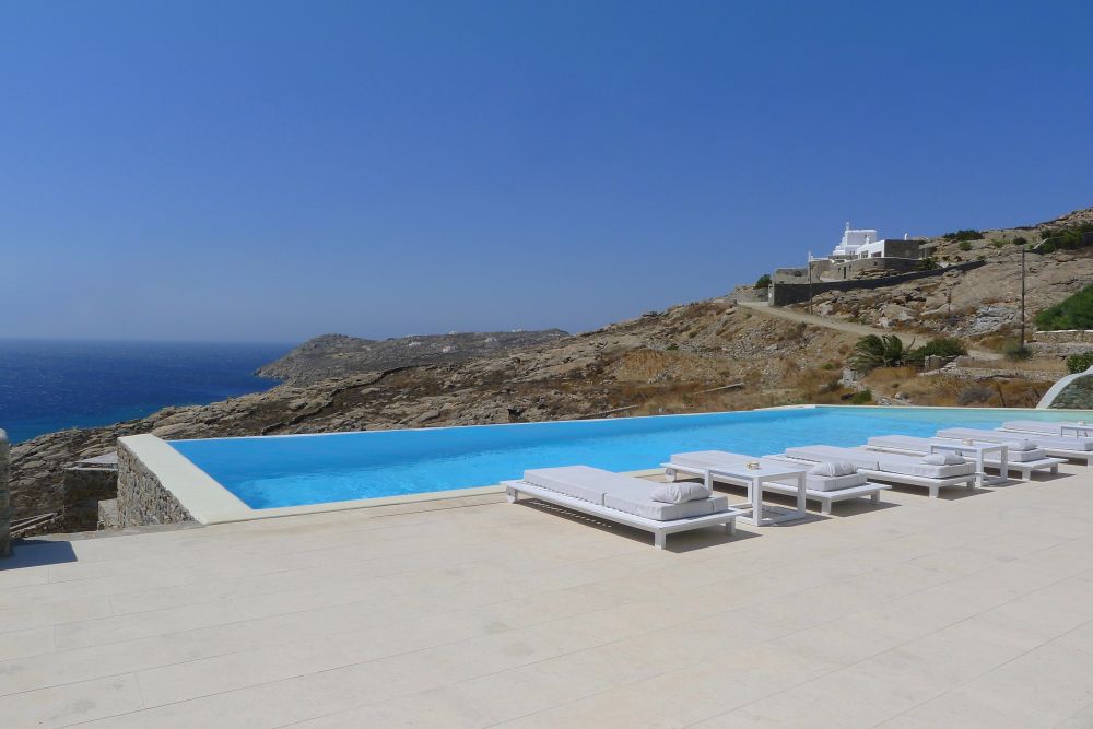 This brand new impressive luxury villa sits high up, nestled in secluded privacy overlooking the deep blue Aegean Sea and the stylish beach of Elia. Its highlight or best features are its luxurious and spacious living & dining quarters and its widespread outdoor pool area with unobstructed views of the sea.