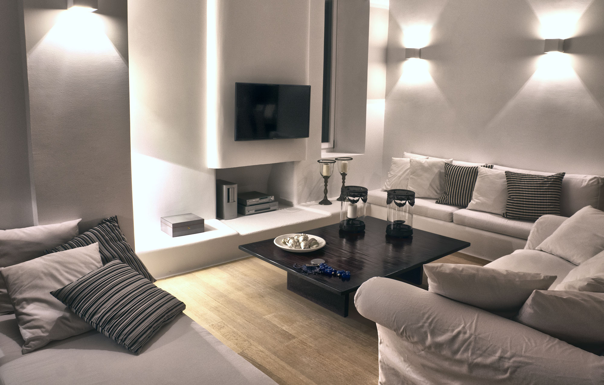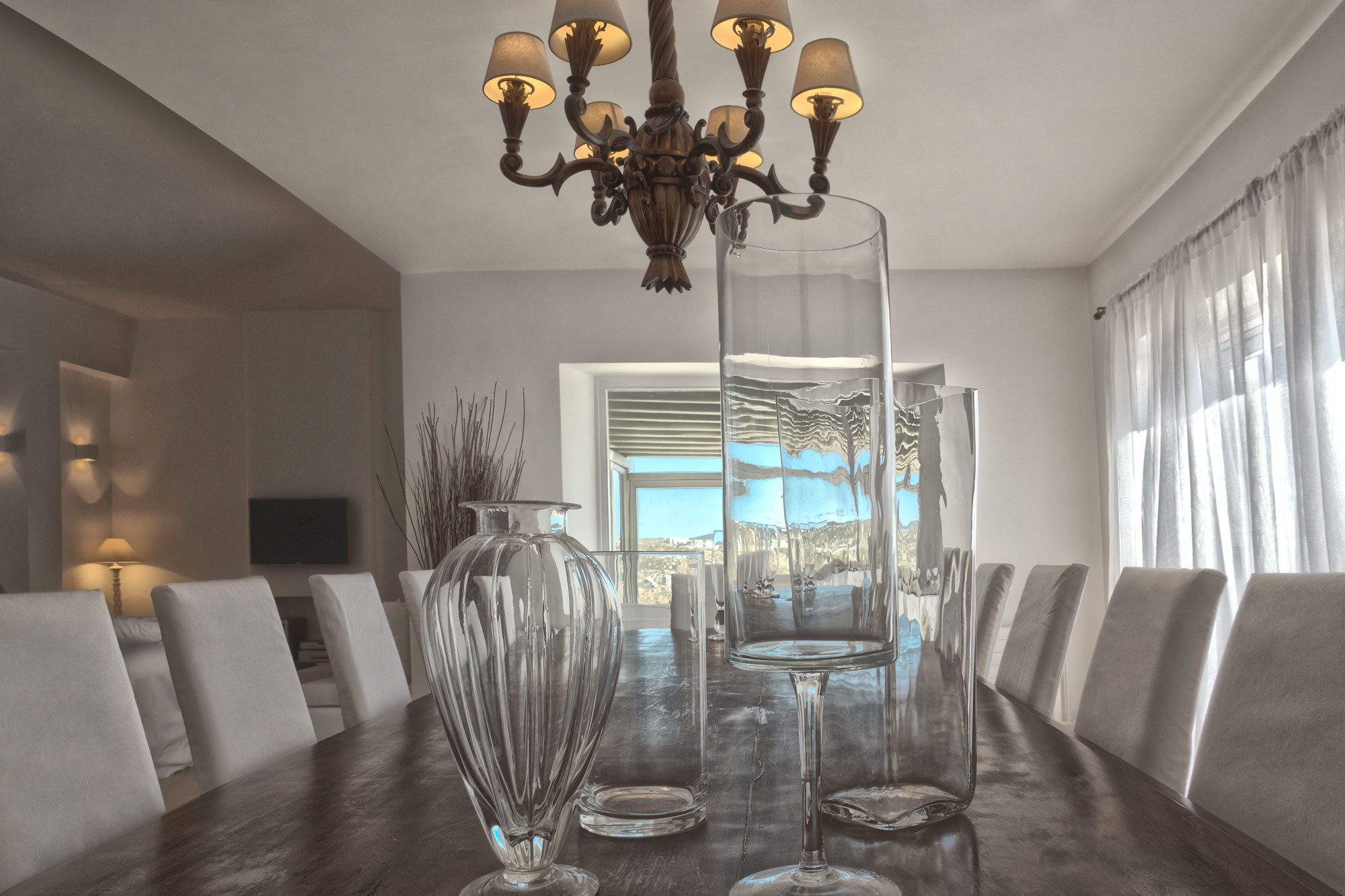 Located just a few minutes drive from the ever famous Jackie 'O beach club and Cavo Paradiso, guests can mingle with the party goers or simply recline in the privacy of their home. The cutting edge architecture is evident throughout this grand villa in Mykonos and the decor is an all-embracing mix of sleek, posh materials and serene Cycladic white and blue finesse.