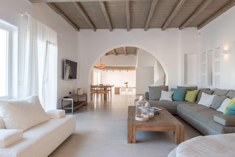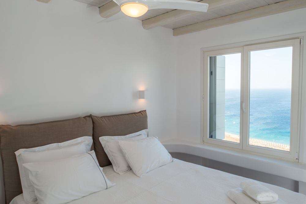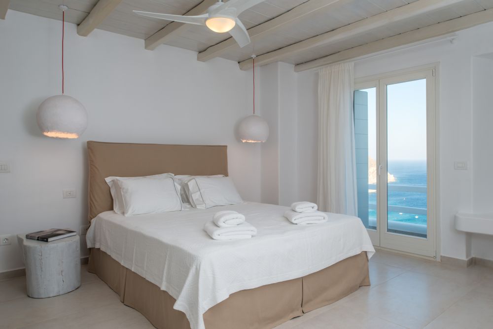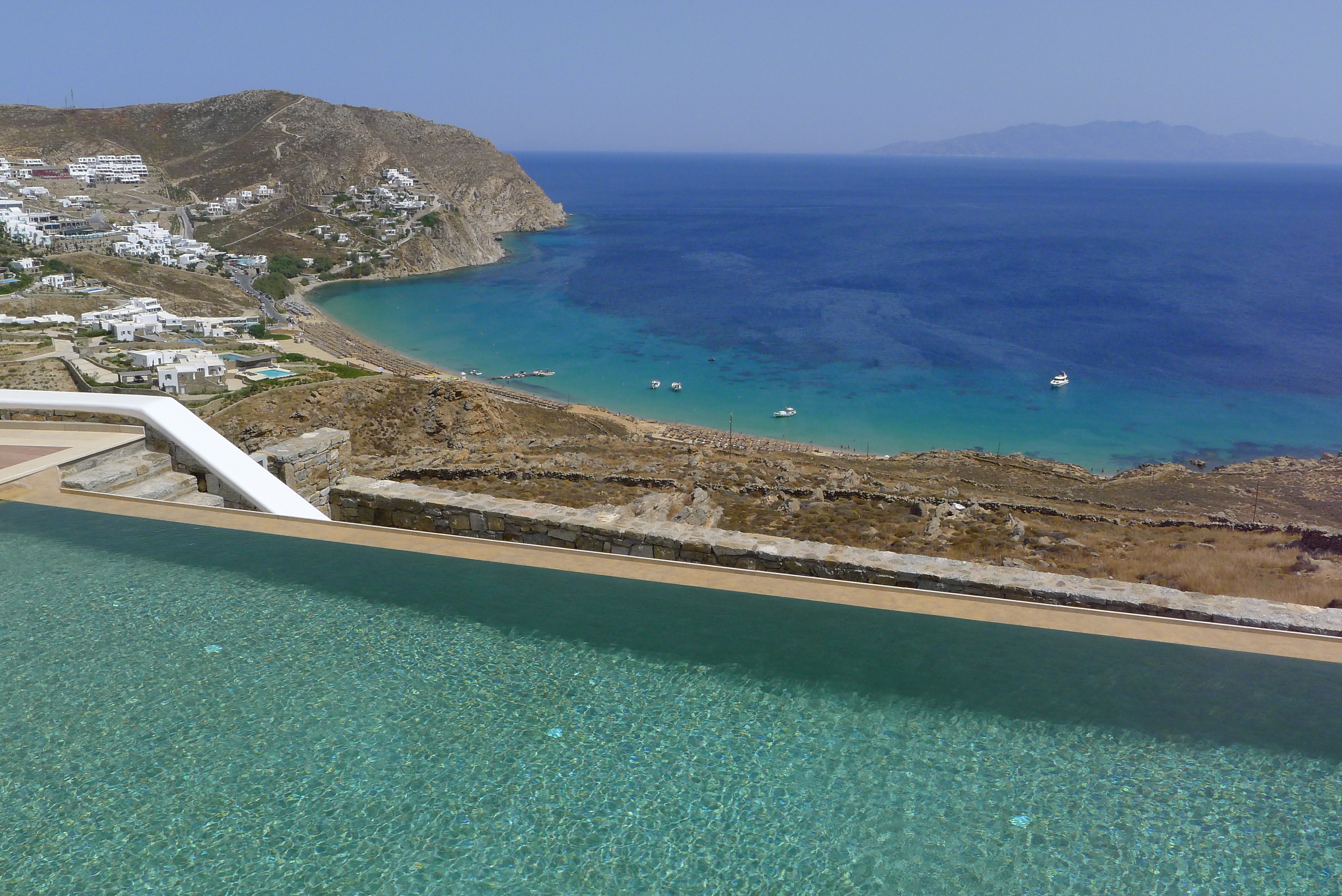 Luxury Villa Chloe is an exquisite new villa located up hill, in the southern part of Mykonos, with outstanding views of Agrari and Elia beach and the Islands of Paros and Naxos. The large outdoor terrace and striking infinity pool complement the villa's upscale decor and minimal/modern sleek lines.