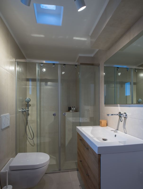 Entry level: Living/dining, fully equipped kitchen, guest bathroom and steam bath