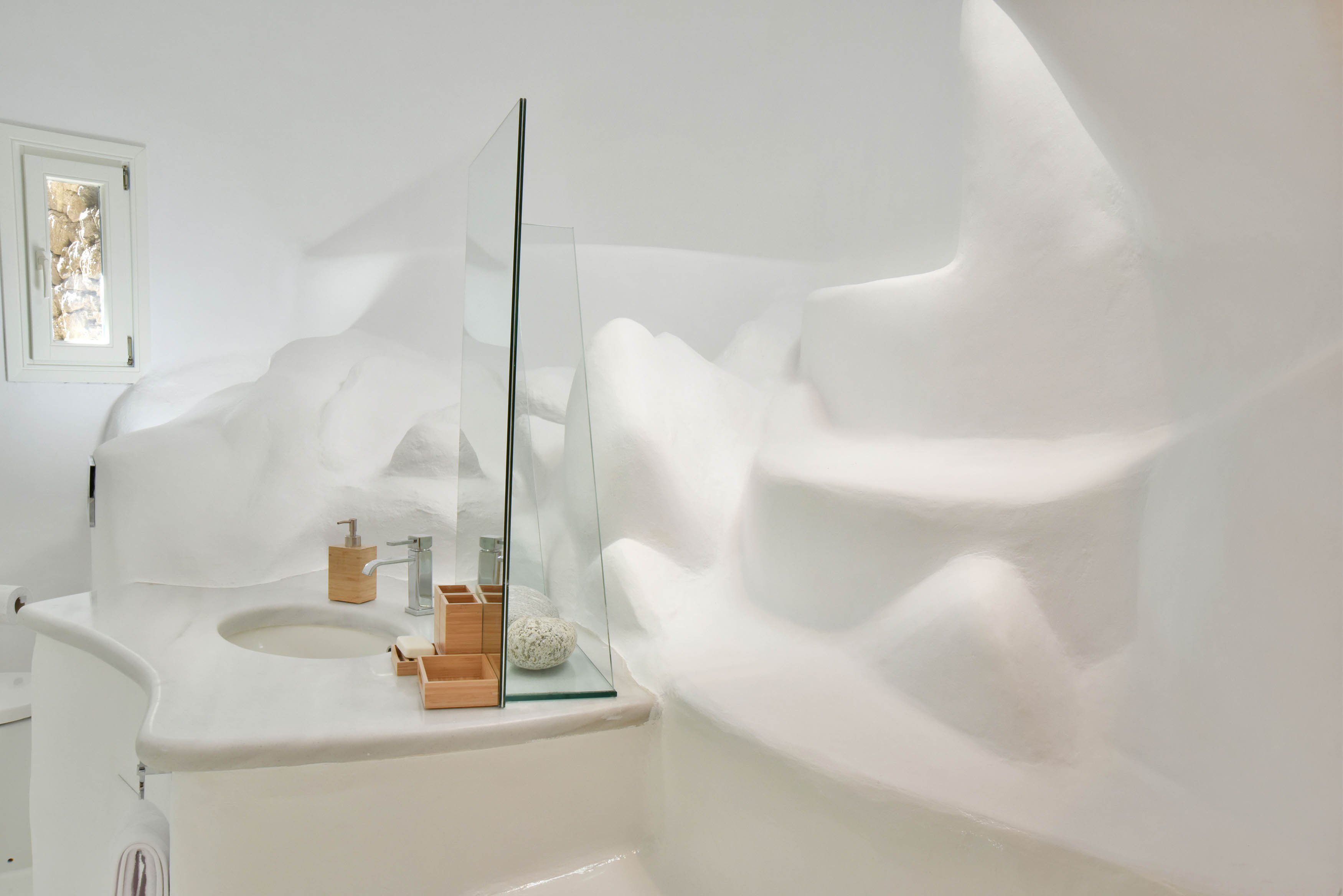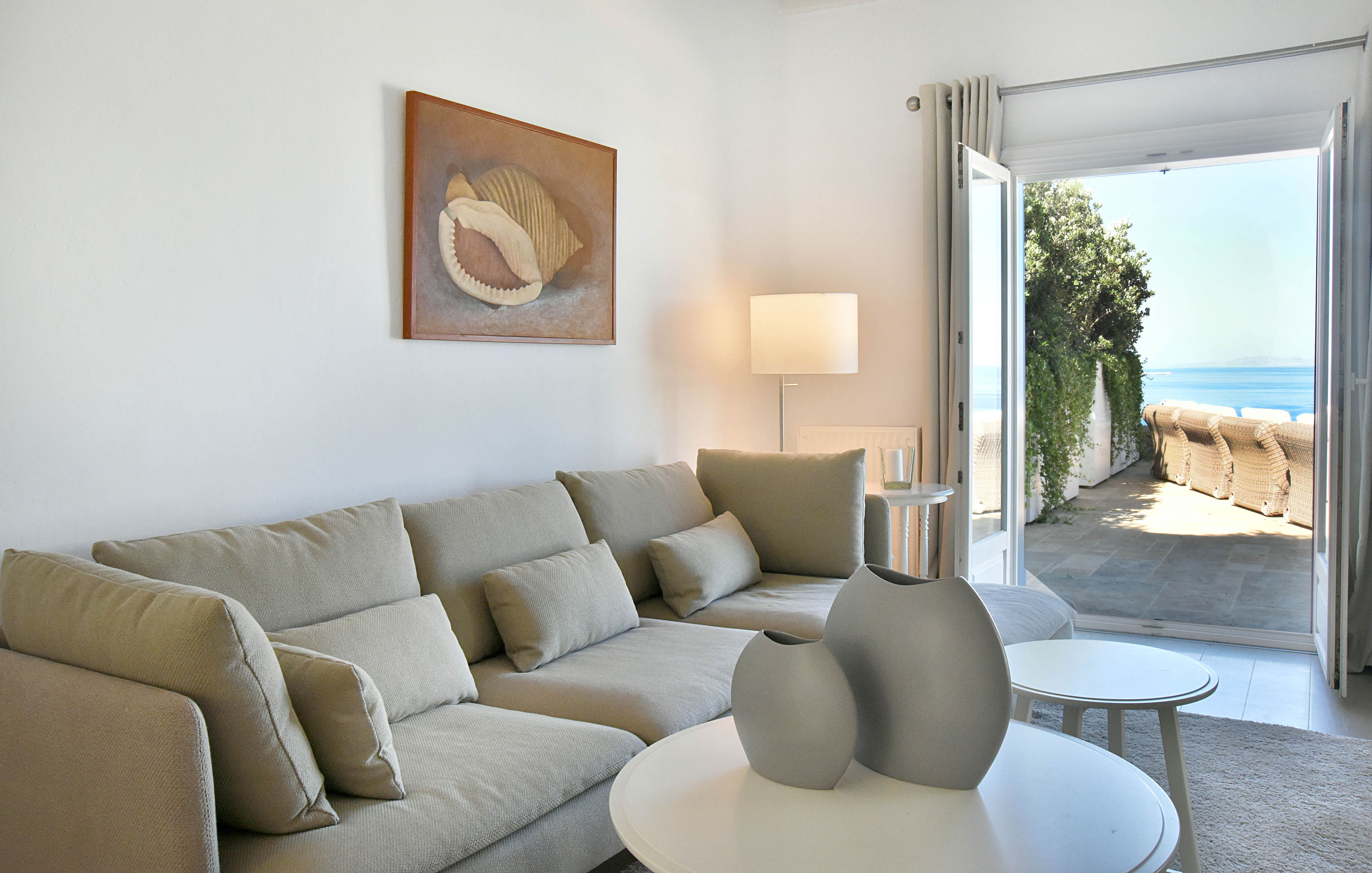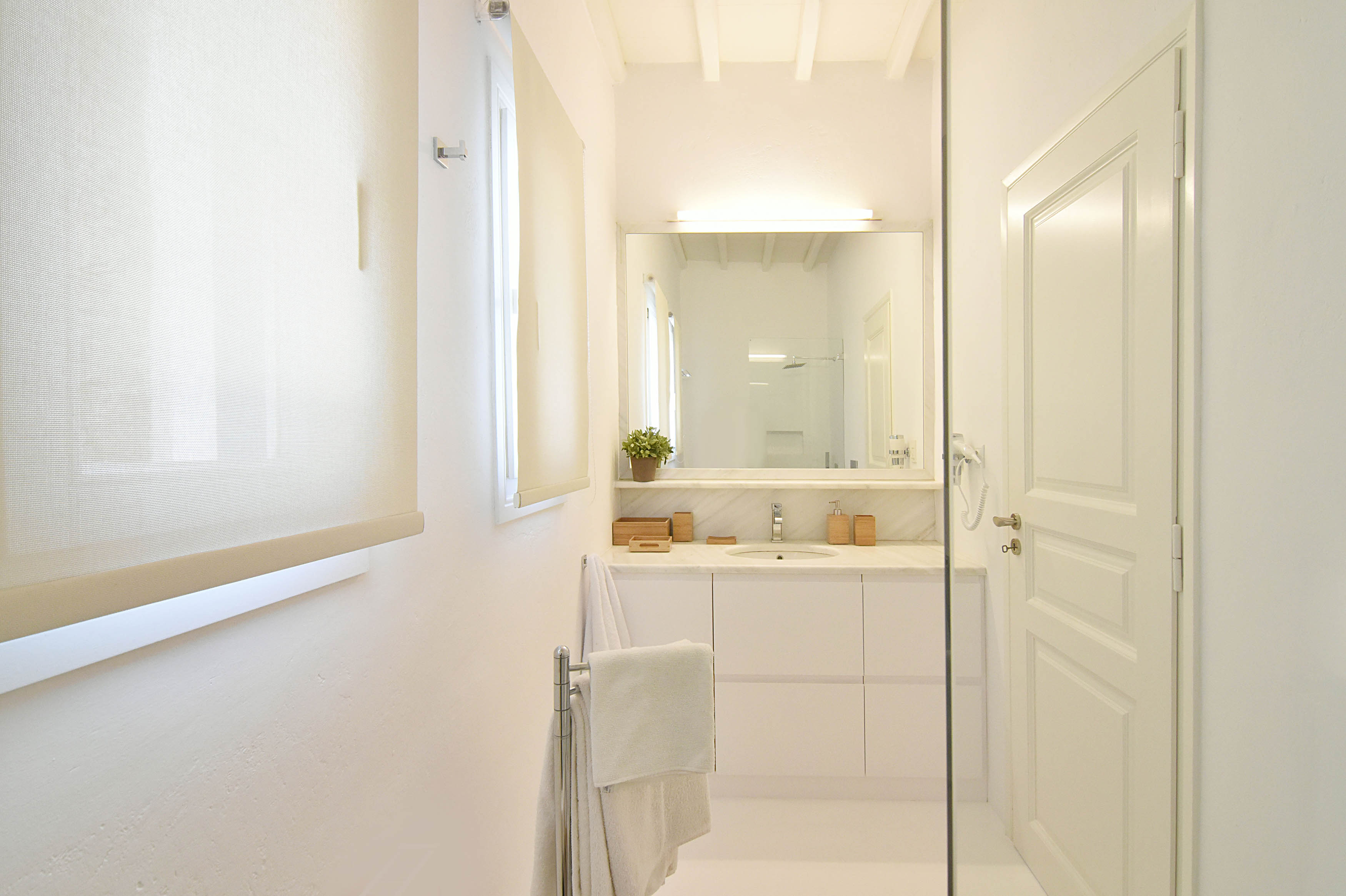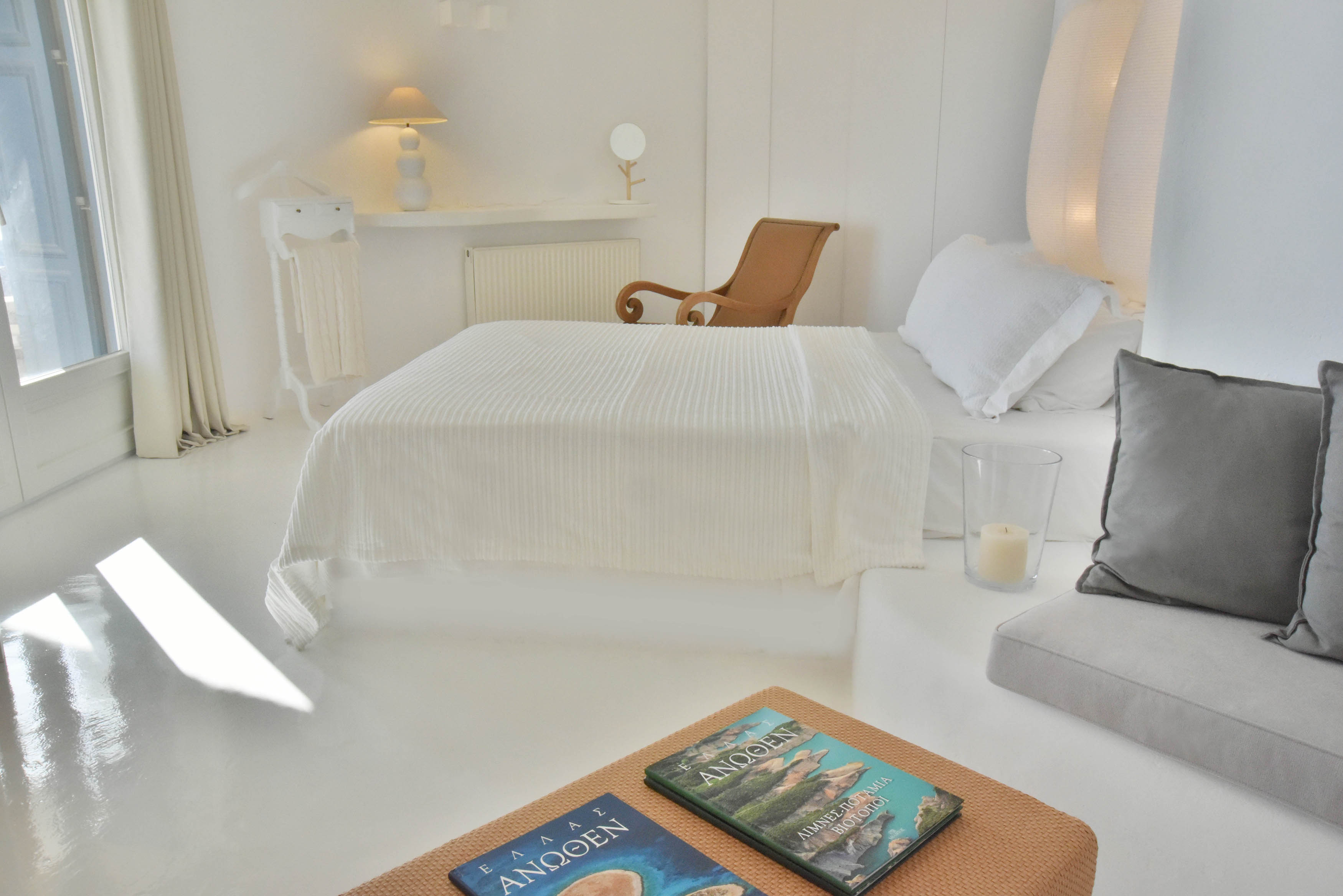 Villa Atalanta is comprised of one main house, one guest house and guest studios and all bedrooms are paired with en suite bathrooms. The style of the villa is refined elegance, plush furnishings and finishings with attention to every detail. The colour pallete is soothing, neutral and easy on the eye with greys, whites and nudes throughout. The bedrooms and bathrooms are bathed in white creating an airy, island feel and the living and dining room is cozy, cheerful and perfect for congenial get-togethers.