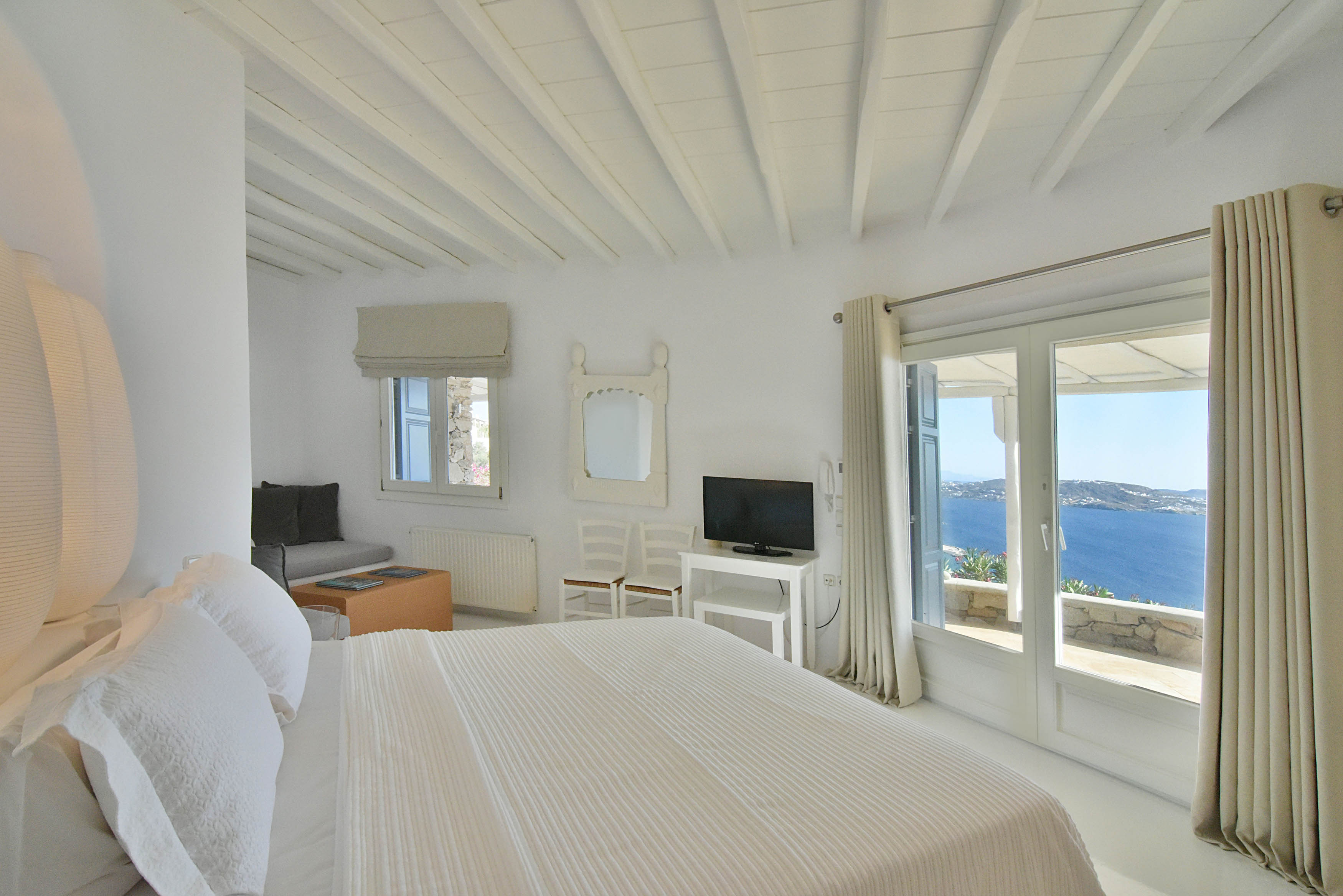 Perched up high above the dazzling lights of Mykonos town, Villa Atalanta, nicely located in Ag. Sophia, is one of our most prime, commodious properties on the island. The panoramic seascape is perfectly unobstructed and the layout is spacious and comfortable. Here, although you are a ten minute drive from town, the merit is that you are in secluded privacy at the same time.