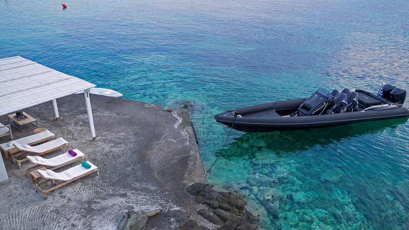 The seafront property consists of 5 en suite bedrooms with incredible views, 2 large living rooms, 2 dining rooms (one indoor and one outdoor), an astronomical terrace with phenomenal sunset views and a huge jetty on the water where you can swim from to nearby sandy beaches. For an extra charge and upon request, there is also a small boat-house that includes a jet-ski, a small sailing boat and a rib boat for daily excursions around the Cycladic islands.