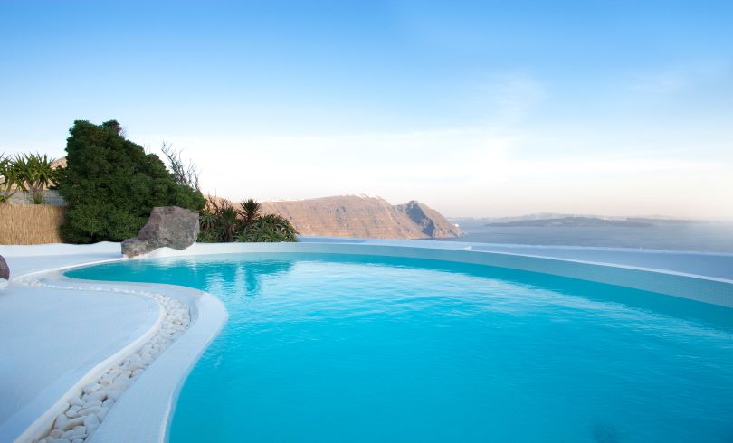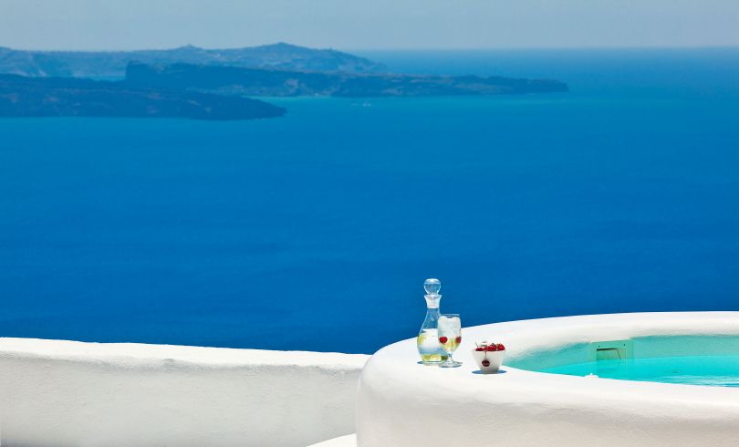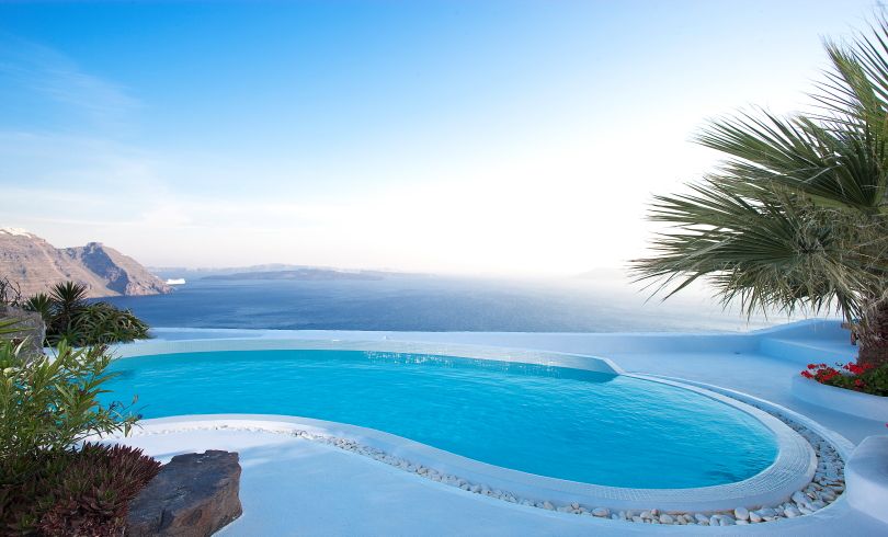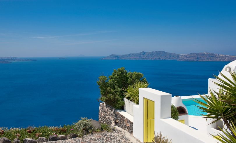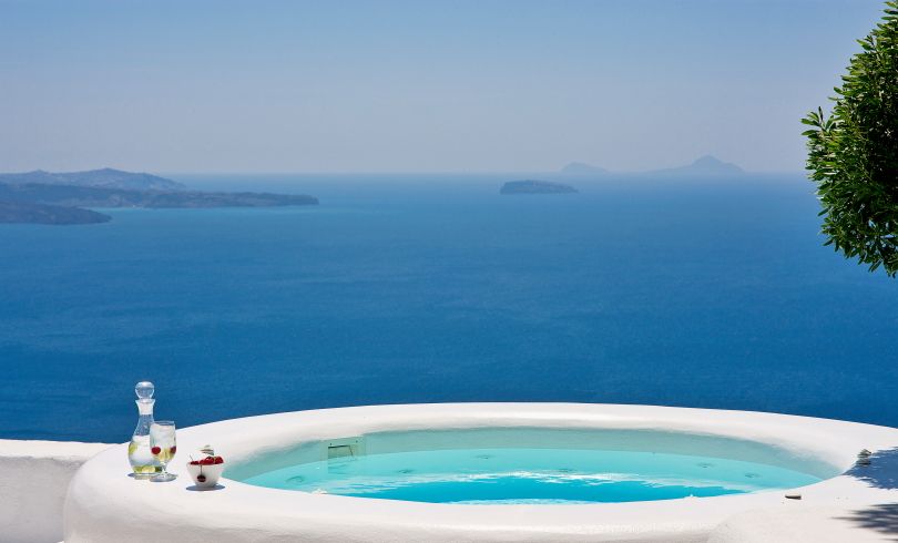 Perched on the cliffs of the Santorini Caldera and overlooking Mouzaki Bay, Villa Europa is located in the north, approximately mid way between Oia and Imerovigli, two of the islands most renown and picturesque villages. Locally referred to as Mouzakia, it is a sparsely inhabited area of the island, granting absolute privacy and offering unobstructed, awe-inspiring views of the of the volcanic islands of Nea and Palea Kameni, Therasia and the Caldera.