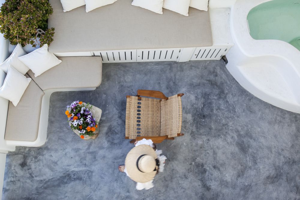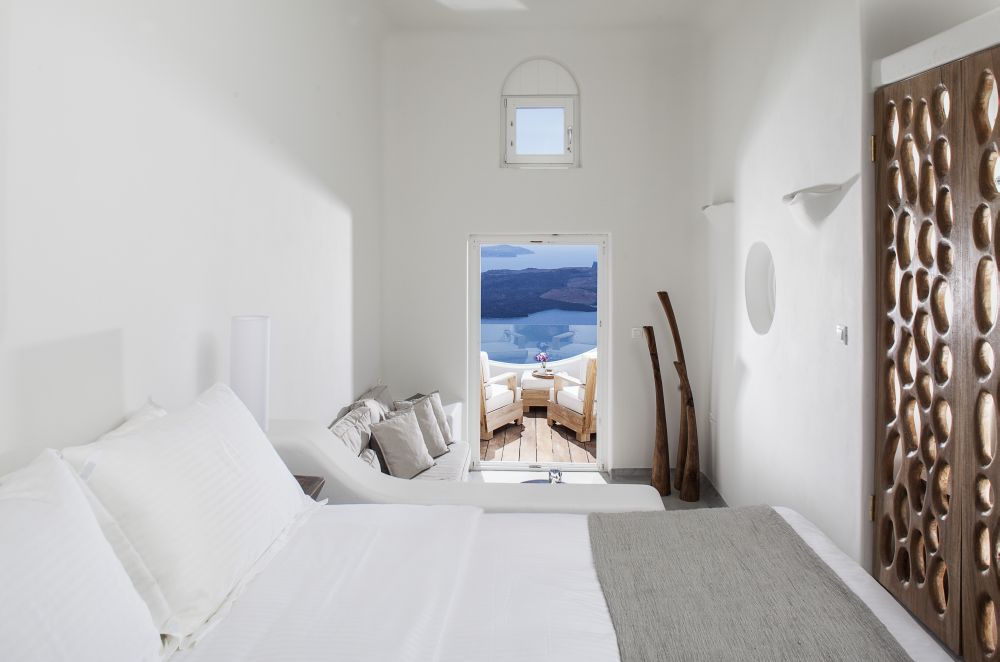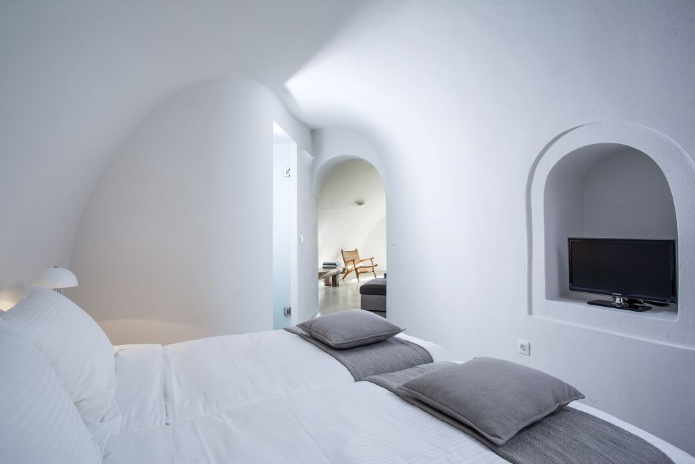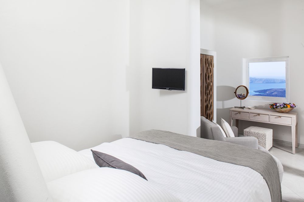 Upper level: Two double bed (queen) bedrooms, en-suite - small sitting area with a kitchenette - pergola shaded veranda with a view of the Santorini Archipelago – sundecks.