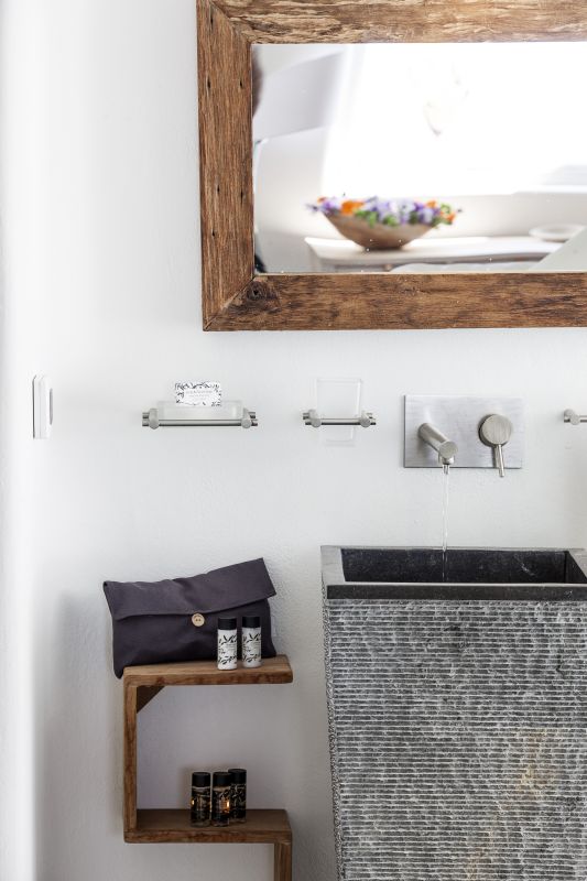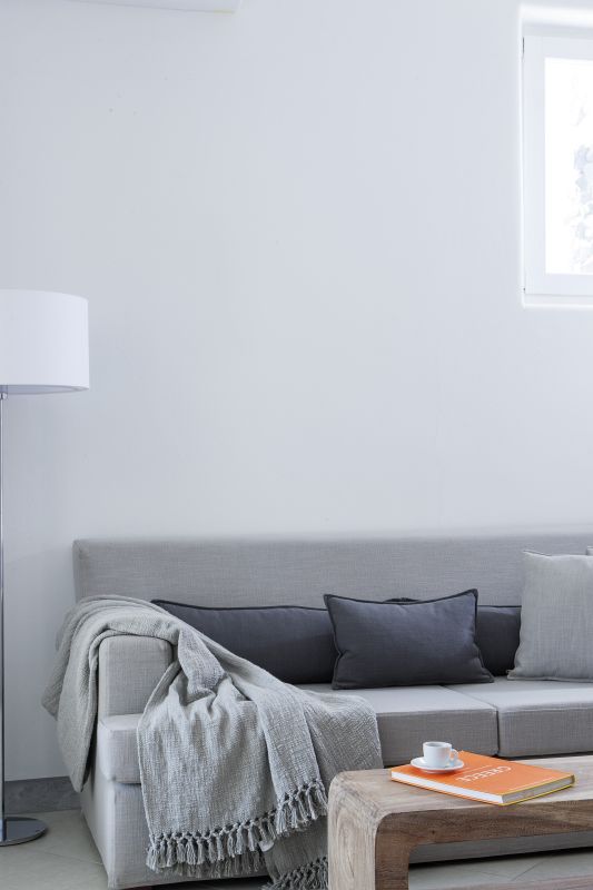 Recently renovated to maximize its energy efficiency and eco-friendliness, this luxury vacation home is a symphony of cavernous spaces, domed ceilings, arched doorways and traditional white walls with furniture of solid wood. Built on two levels connected via a captivating spiral staircase carved out of the volcanic rock, this villa for rent onSantorini can comfortably accommodate a group of up to eight (8) guests in four bright and airy double bed bedrooms, all en-suite. Upon arrival to Villa Ino our guests enter a cozy courtyard terrace with built in sofas and an outdoor Jacuzzi where the main entrance to the villa is located. Crossing its threshold, guests are welcomed into a spacious cavernous lounging area, a cool, central gathering spot with comfortable sofas that leads to the two ground floor bedrooms, one with a queen size double bed, the other, with two twin beds. Each room has its own en-suite bathroom. The main fully equipped kitchen is also located on this level. Two more bedrooms with queen size beds and en-suite, are located on the upper level, one of which exits to a balcony ideal for an intimate nightcap or early morning breakfast with a live canvas view of the mist flooded volcanic crater. A small sitting area with a kitchenette, exits to a balcony with teak wood flooring and a second outdoor Jacuzzi with a magnificent view of the volcanic archipelago.