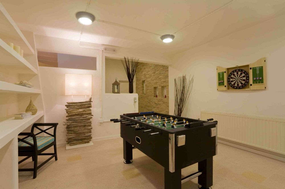 Garden level: Large recreational room – Two bedrooms with twin-double beds, en-suite.