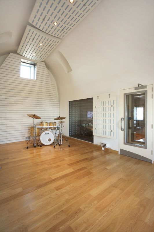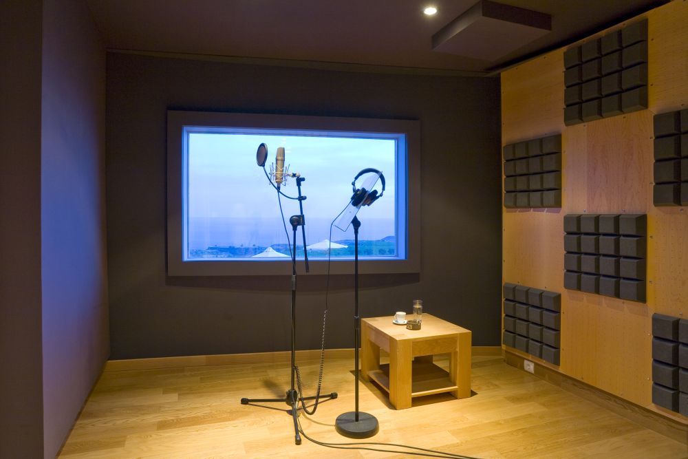 Entry level: Casual lounging room with dining area loft - Fully equipped and fully functional open plan kitchen – Fully operational office - guest bathroom - Two bedrooms with large beds (king size and twin-double), both en-suite - World class sound recording studio.